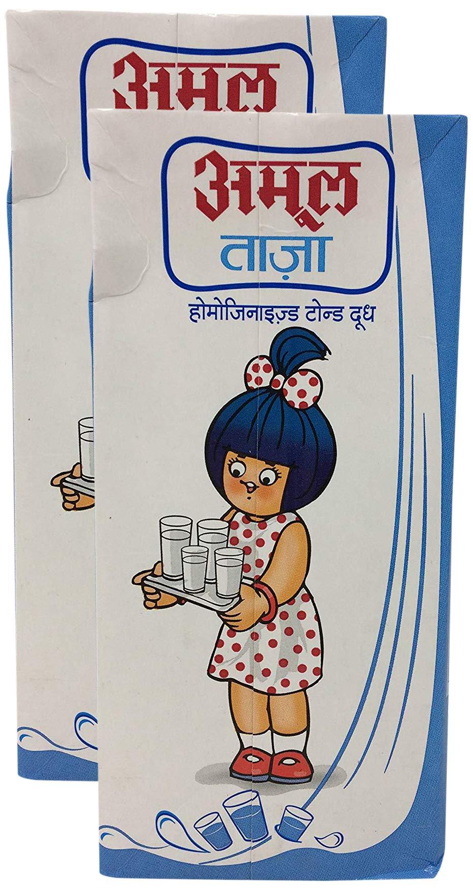 Amul Amul Taaza Homogenised Toned Milk, 1L(Pack of 2, Liquid)