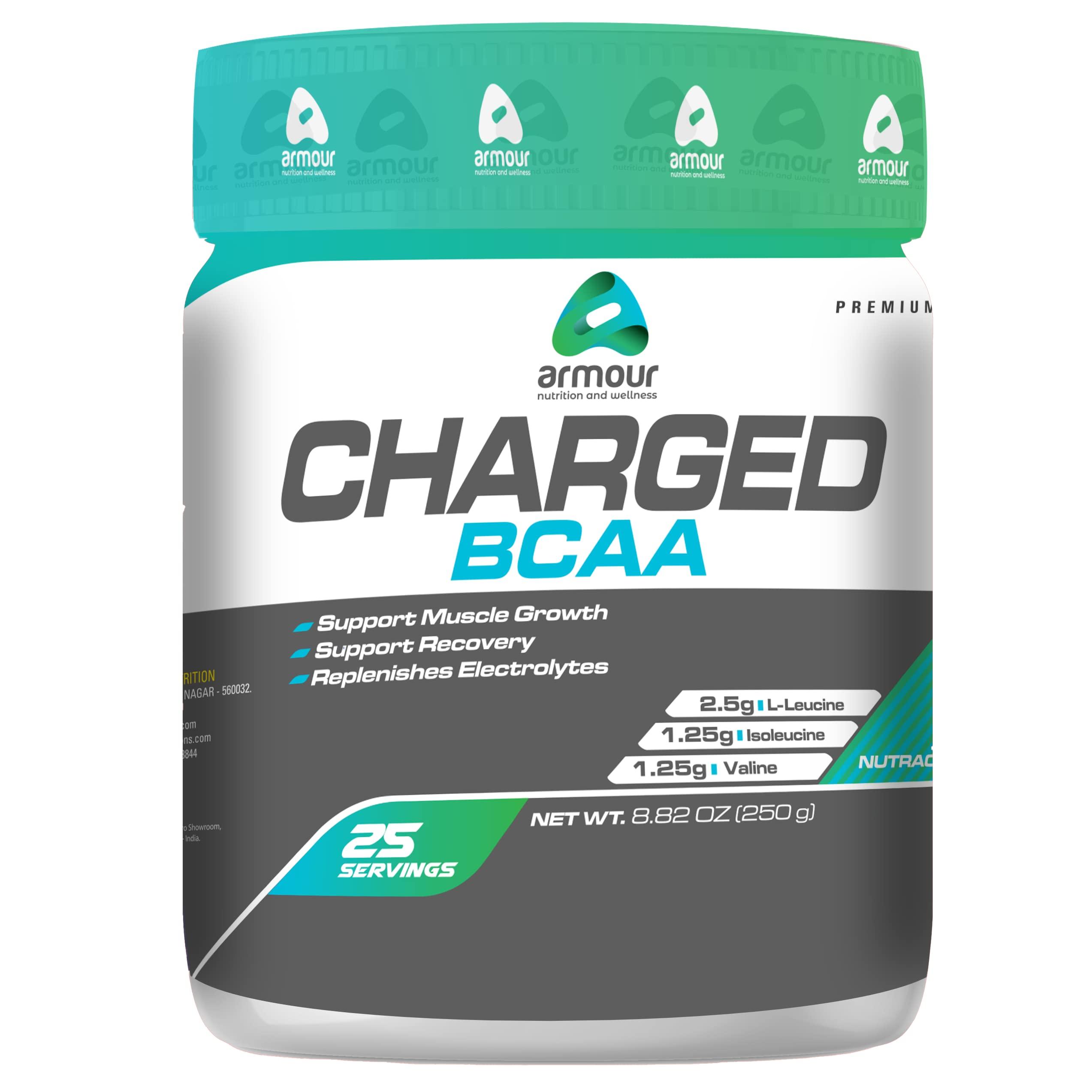 ARMOUR NUTRITION Charged BCAA 250gm Revolition Green Tea Flavor 25 Servings Support Muscle Growth & Recovery