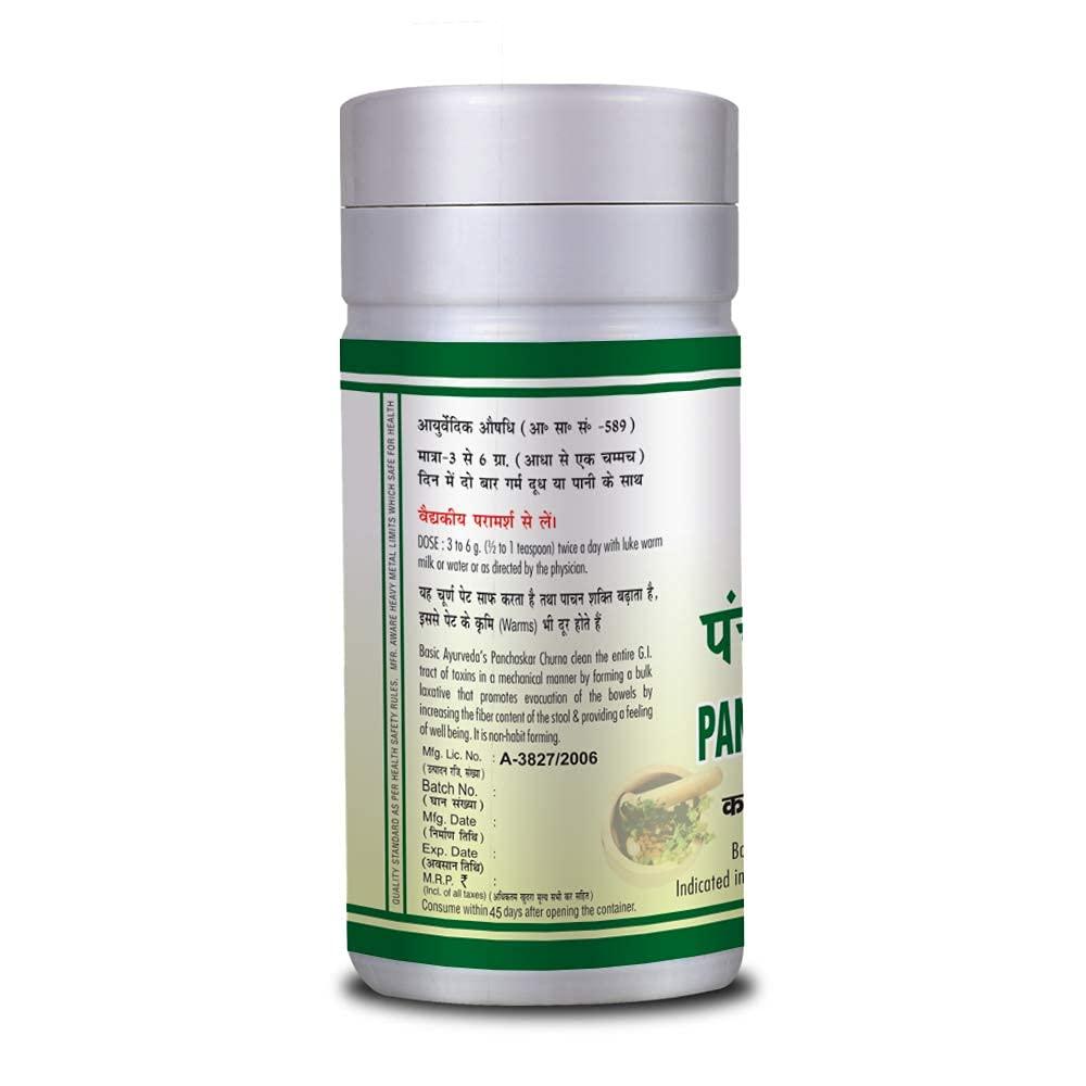 - Basic Ayurveda Panchaskar Churna is a herbal classical ayurvedic formulation accurately composed that is available in the form of powder and is mainly useful for cleaning the stomach and improving digestive health.