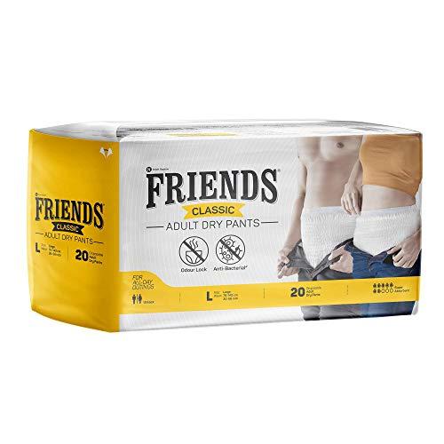 - Friends Adult Diapers large size pant style with 8 hours of protection are also available in sizes M, XL, and XXL.
