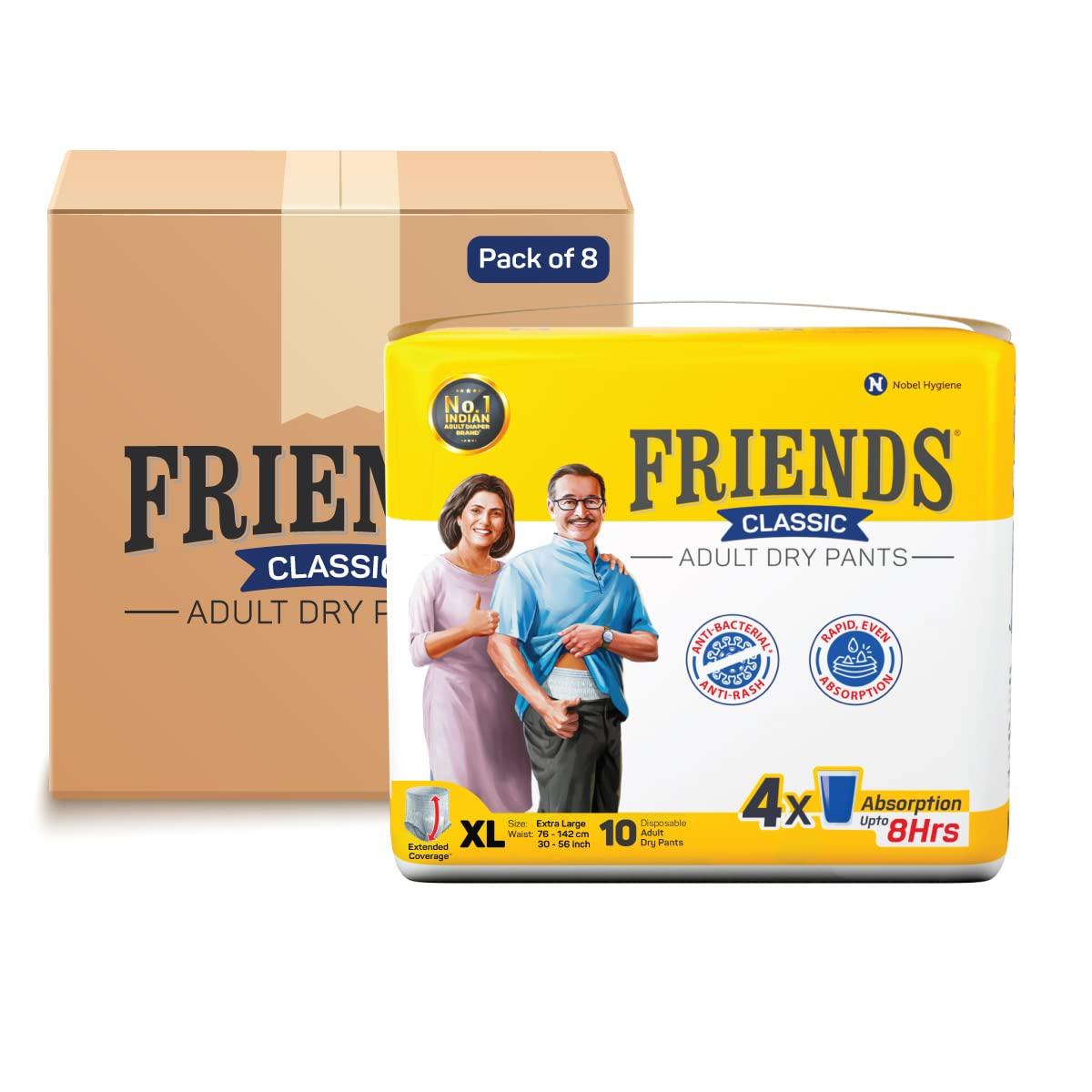 - Friends Adult Diapers XL size pant style are also available in sizes M, L, and XXL.