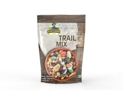 Jewel Farmer Trail Mix is a delicious and nutritious blend of Chocostones, Almonds, Cashewnuts, Cranberries, Chickpeas, Pumpkin Seeds, Black Raisins, Broad Beans, Sugar, Sunflower Oil & Edible Salt. You can eat it raw as a snack or use it as a garnish for mixed green salads.