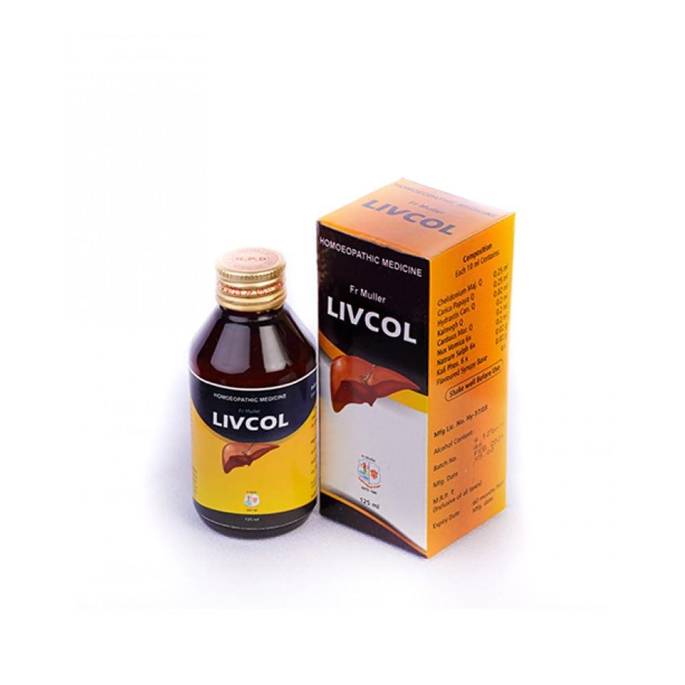 - Fr Muller Livcol is a tonic for liver-related concerns. Key Ingredients: Chelidinum maj. Q Carica papaya Q Hydrastis can Q Kalmegh Q Carduus mar. Q Nux vomica 6x Natrum sulph 6x Kali phos 6x Key Benefits: It is a homoeopathic medicine It can help in managing liver-related concerns Directions For Use: Take one to two teaspoonfuls, two to three times a day Safety Information: Read the label carefully before use Store in a cool and dry place, away from sunlight Keep out of reach of children Don