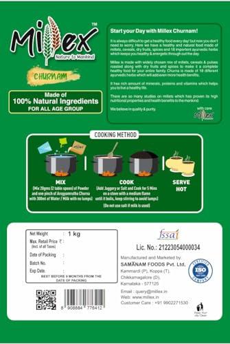 - *Traditional Indian blend of 30 NATURAL INGREDIENTS and 18 HERBS AROGYAMRUTHA CHURNA: Brown Top, Finger( Ragi), Kudo, Little Millet, Foxtail Millet, Proso, Pearl, Sorghum (Jowar), Barnyard Millet, Green Gram, Horse Gram, Maize, Barley, Red Rice, Chik Peas, Masoor Dal, Kidney Beans (Rajma), Toor Dhal Wheat, Almonds, Cashew Nut, Pista, Black Pepper, Fenugreek, Cardamom, Flax Seeds, Chia Seeds, Pumpkin Seeds, Watermelon Seeds, Makhana (Lotus Seeds). HERBS: Ashwagandha, Shatavari, Guduchi, Haritaki,