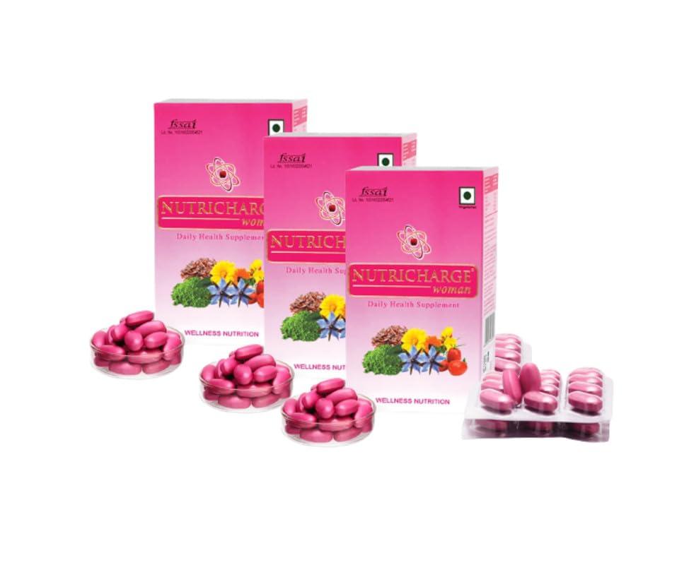 Nutricharge Woman tablet has 50 essential nutrients packed with vitamins, minerals, amino acids, fruit blend and botanicals that support the daily needs of a woman.A woman has special nutrient needs that change with each stage in her life. Today, a womans biggest impediment is an imbalanced diet and poor lifestyle which leads to myriad of health problems.