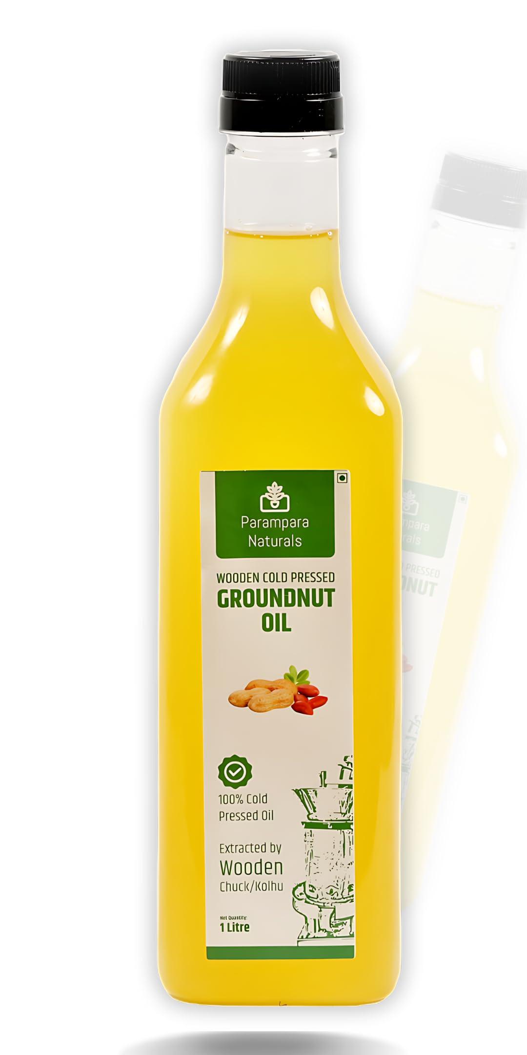 Parampara Naturals Parampara Naturals Peanut Oil Wood Pressed Unrefined Edible for Cooking Cold Pressed Mungfalli Tel Pure & Natural Kacchi Ghani/Chekku Sing Tel Wooden Churner Extraction 1 Litre
