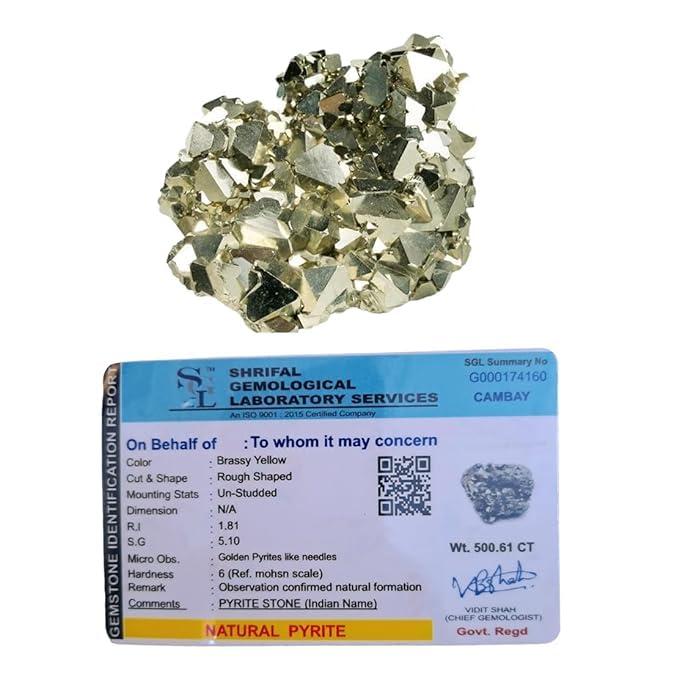 - Pyrite Stone Original Cluster Stone - Natural Energised Golden Pyrite Stone for Healing, Willpower, Money Manifestation, Vastu, and Business - Certified Original Pyrite (50 Grams Plus Approx.)