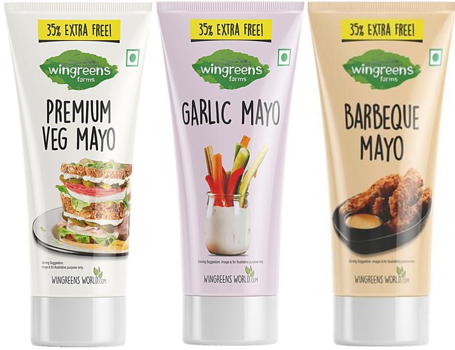 Wingreens Farm Barbeque Mayo|Garlic Mayo|Premium Veg Mayo| 180g Combo Pack - HUMARABAZAR