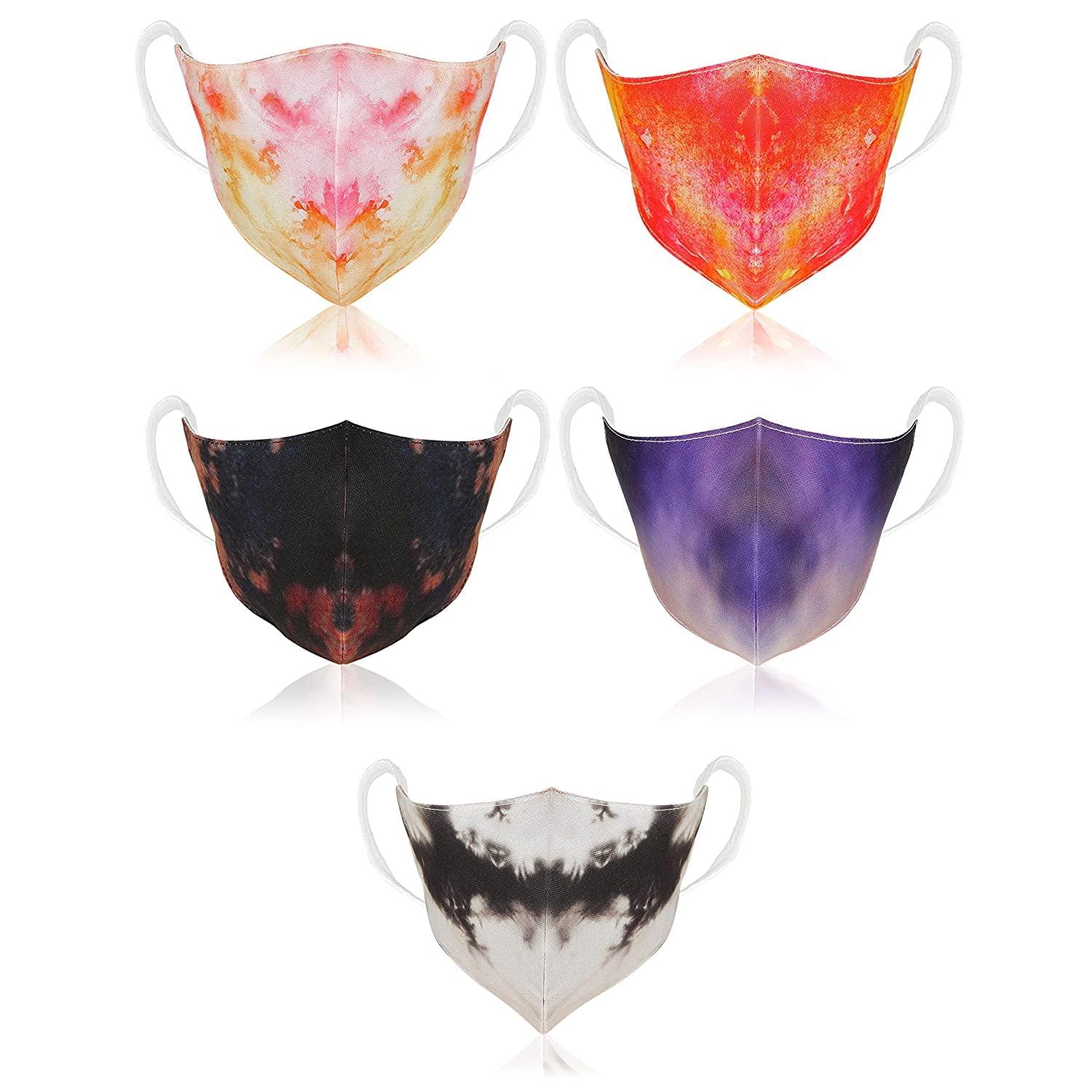 ZEPOLI Cloth Mask Fashion/Plain/Orchid Flower Soft Cloth Face Mask - Tie-Dye Fashion Print Cloth Face Mask -Washable & Reusable Cotton Masks for Adult (DARK TIE-DYE 5 Piece)